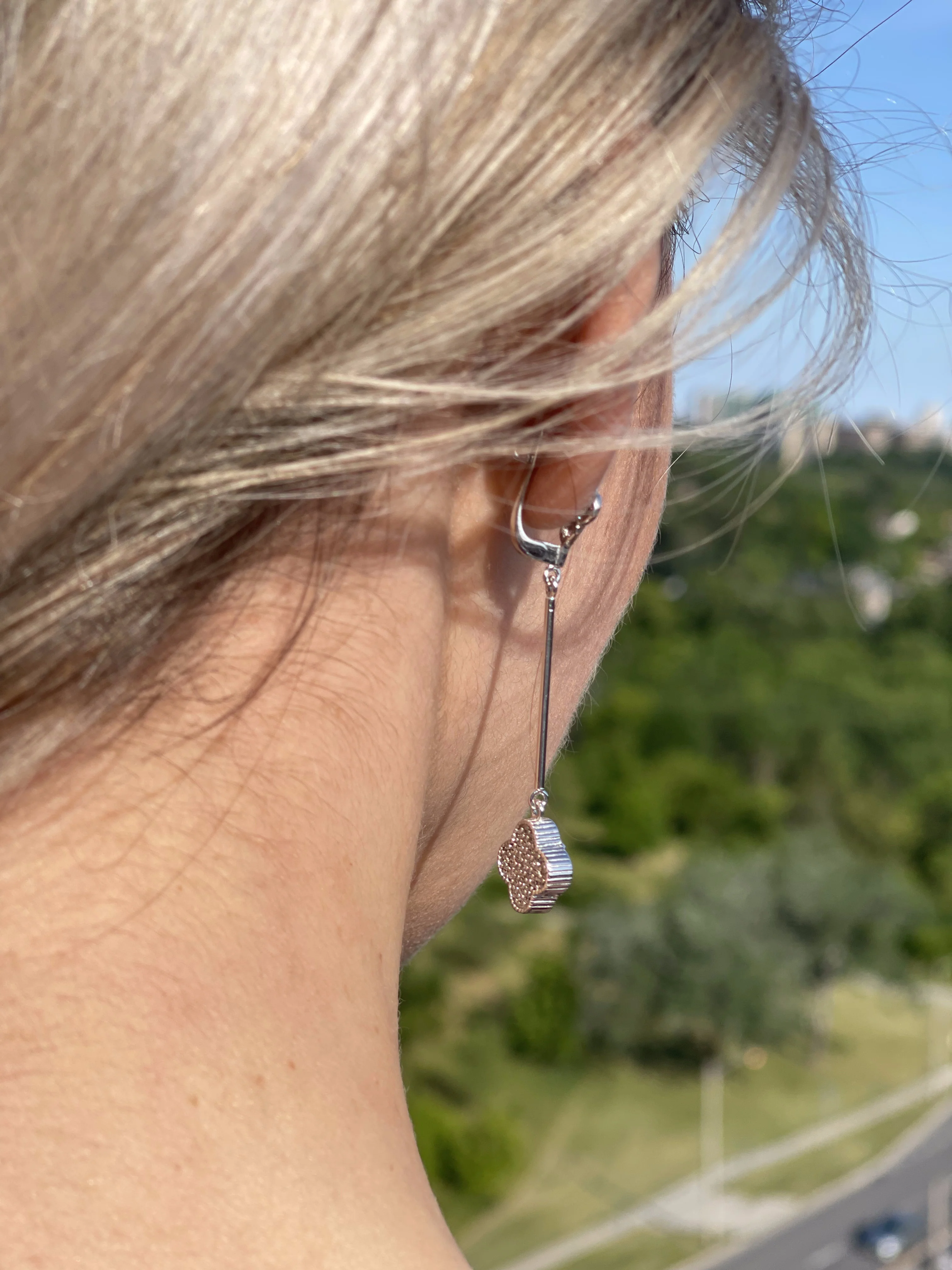 Modern earrings decorated with cubic zirconia and enamel,Ā made in 14K white gold.